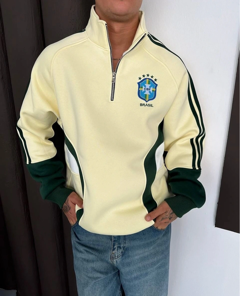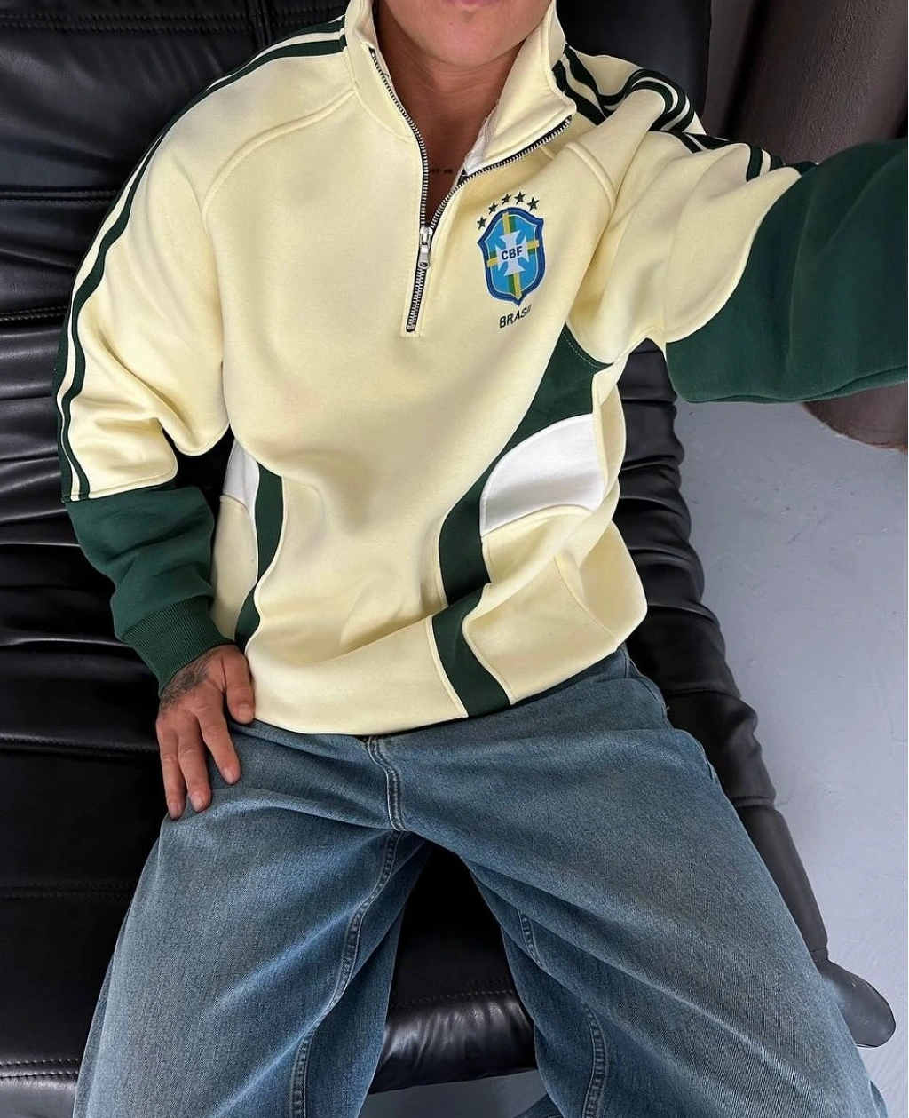 BRZ Polo Yaka Şardonlu Sweatshirt Sarı