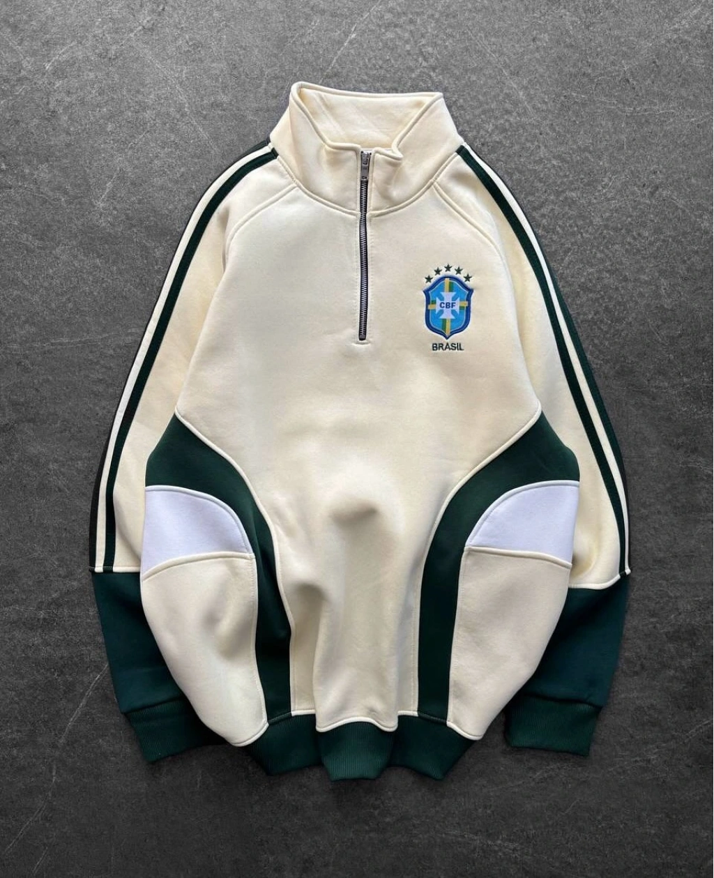 İtaly Parçalı Şardonlu Sweatshirt Beyaz