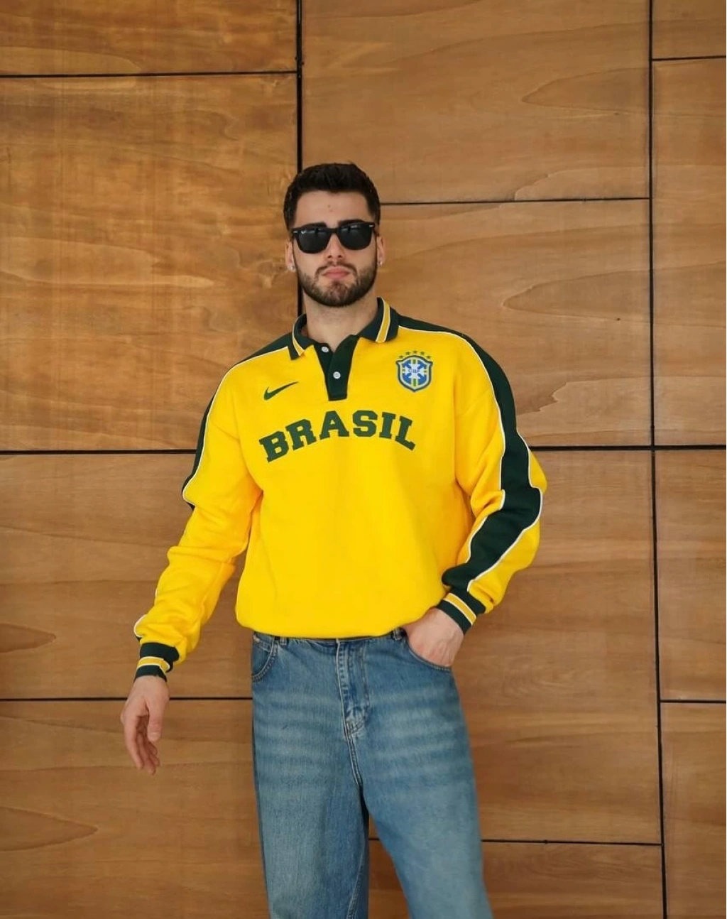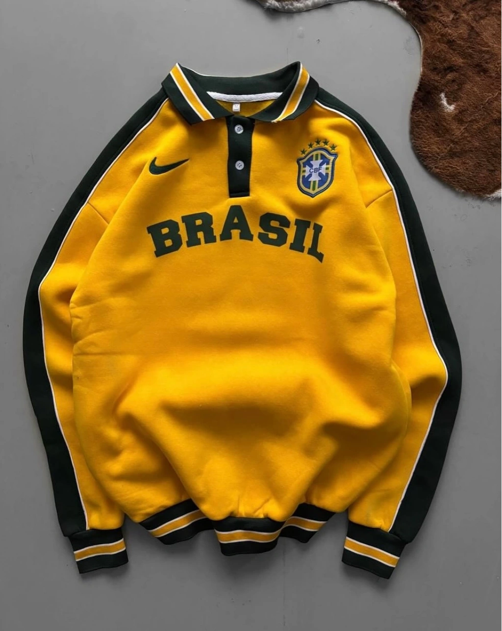 BRZ Polo Yaka Şardonlu Sweatshirt Sarı