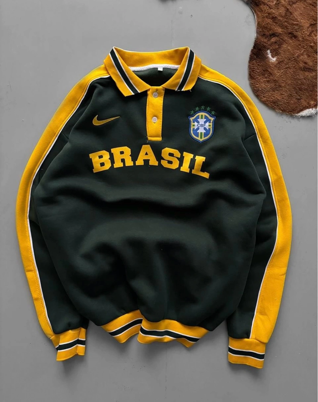 BRZ Polo Yaka Şardonlu Sweatshirt Sarı