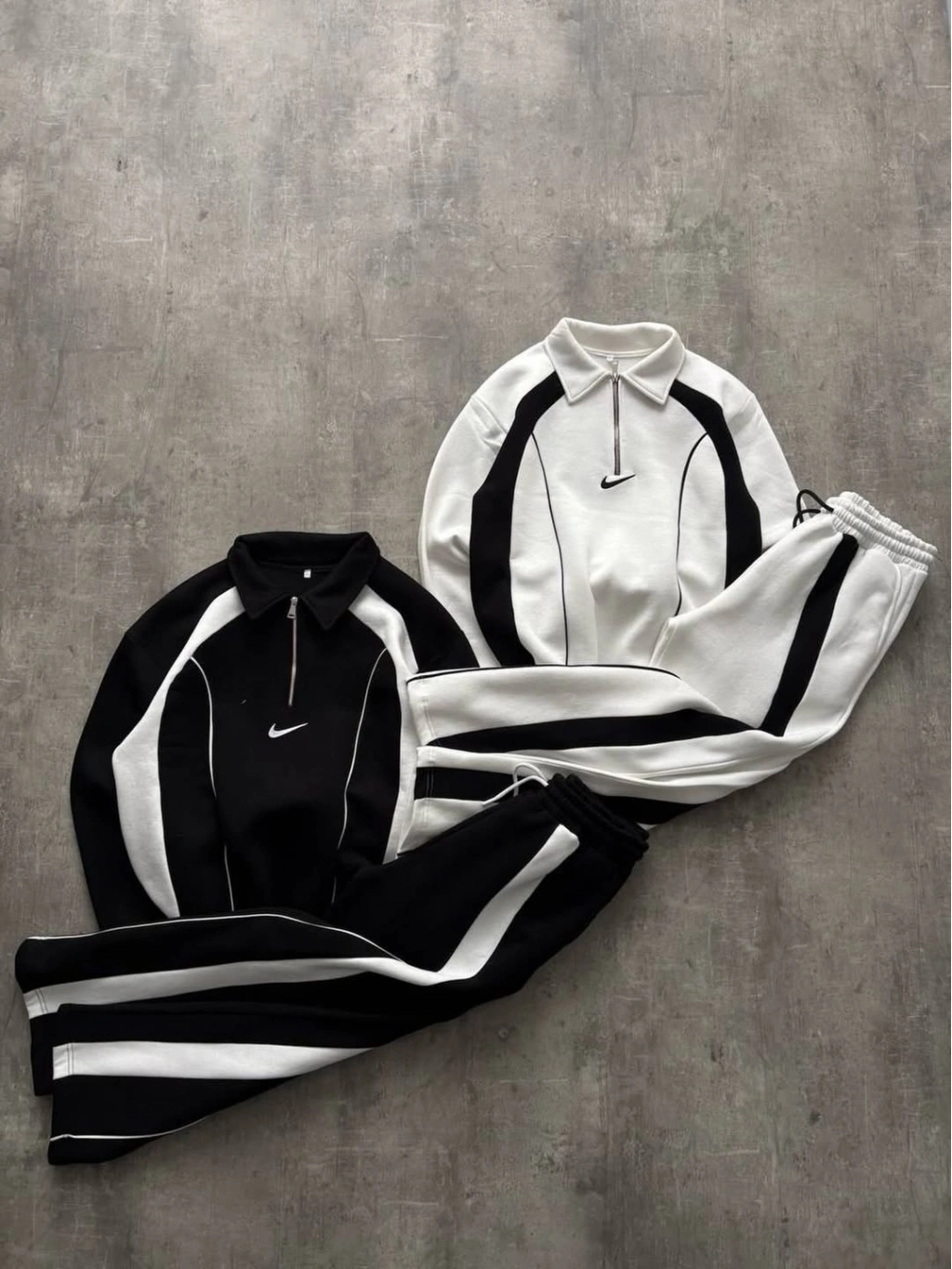 Dik Yaka Unisex Eşofman Takımı Beyaz