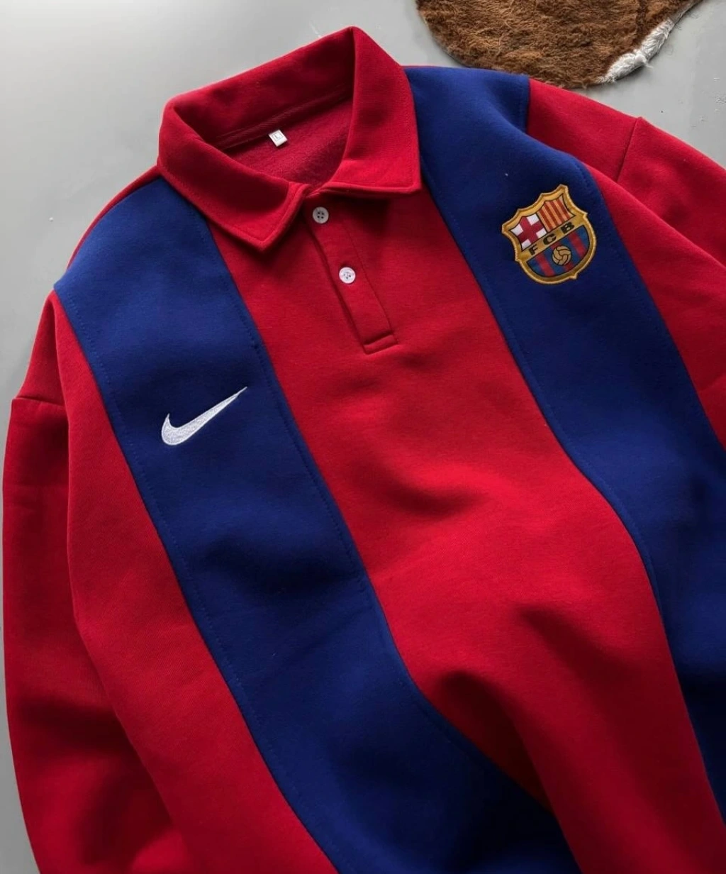 FCB Polo Yaka Unisex Şardonlu Sweatshirt