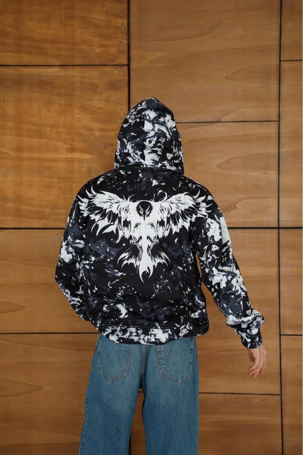 Örümcek Kar Maskeli Unisex Hırka Siyah