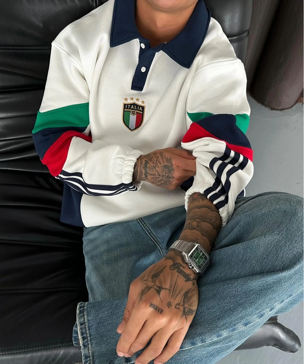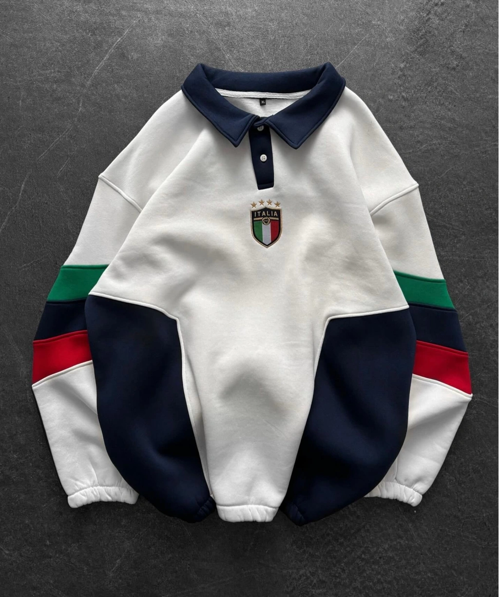 İtaly Parçalı Şardonlu Sweatshirt Beyaz