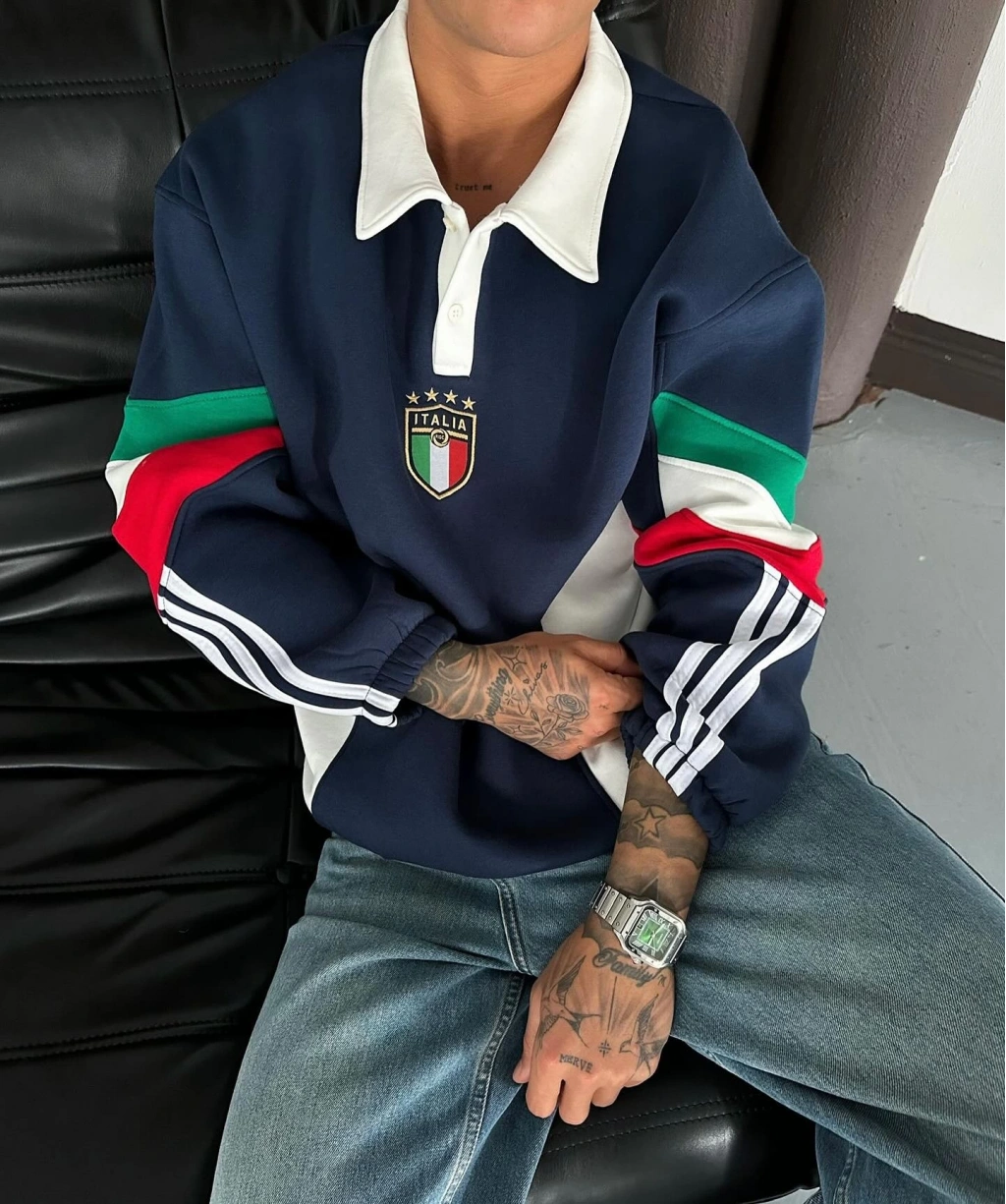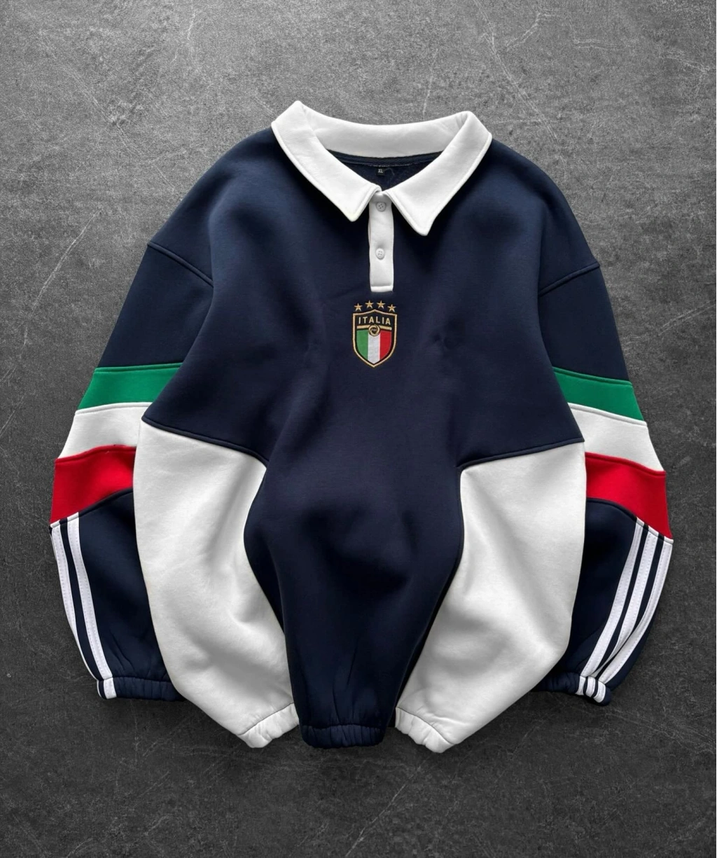 İtaly Parçalı Şardonlu Sweatshirt Lacivert