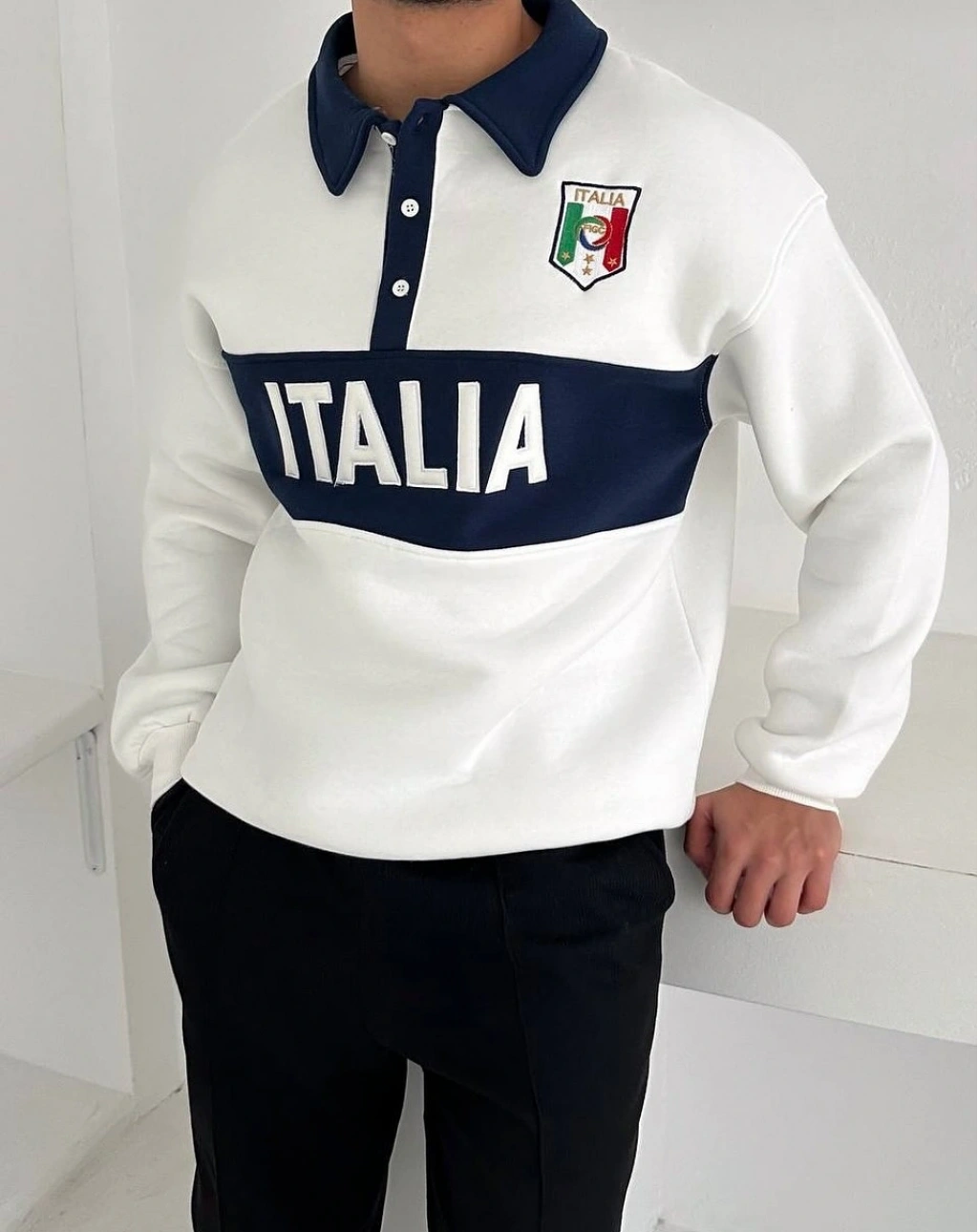 İtaly Polo Yaka Şardonlu Sweatshirt - Beyaz