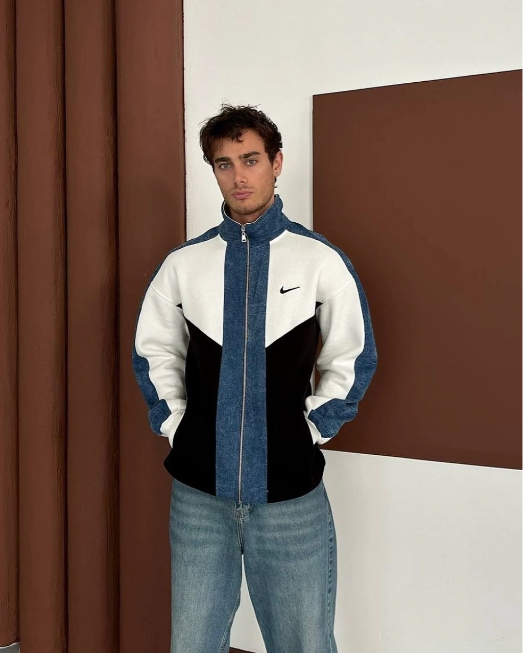 İtaly Parçalı Şardonlu Sweatshirt Lacivert