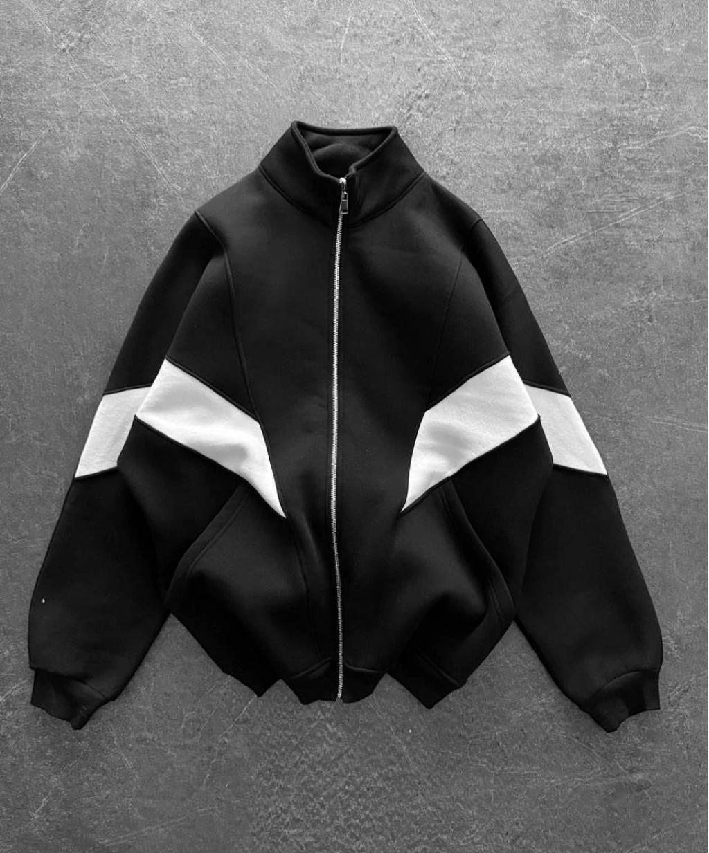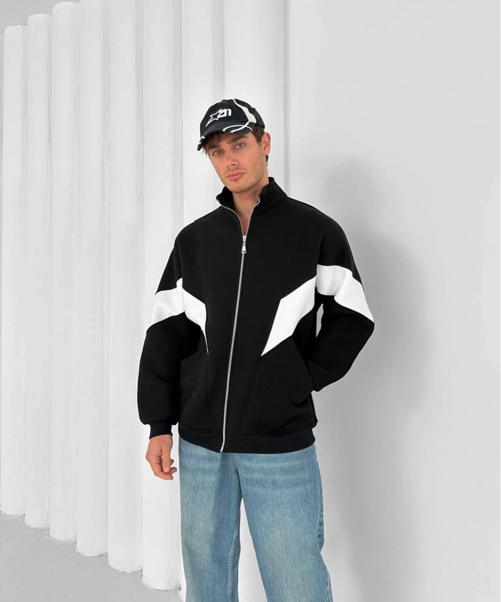 Parçalı Oversize Şardonlu Unisex Hırka Siyah