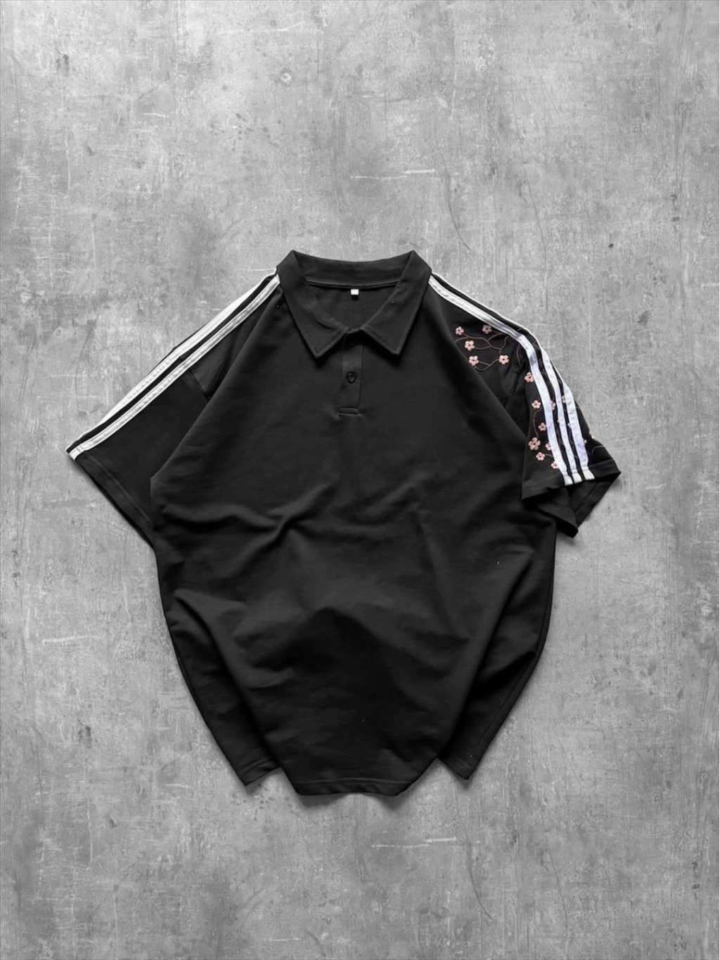 Yıkamalı Oversize Polo Yaka Tshirt Mavi