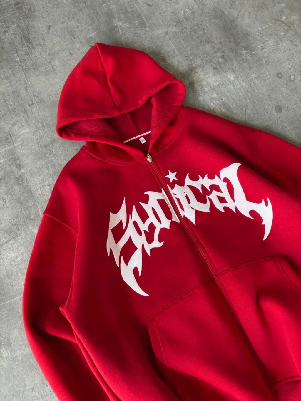 Taşlı Şardonlu Unisex Hırka Kırmızı