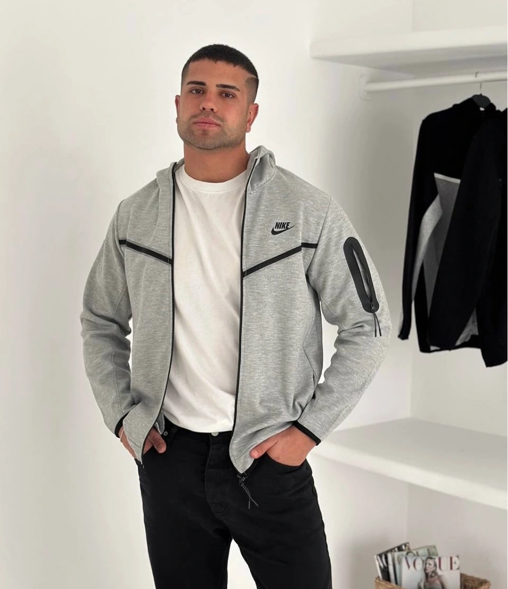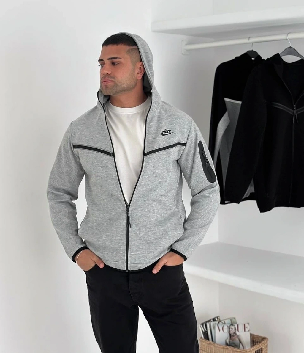 Tech Kapüşonlu Unisex Hırka - Gri