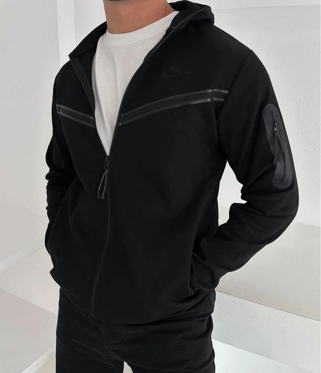 Tech Kapüşonlu Unisex Hırka - Siyah