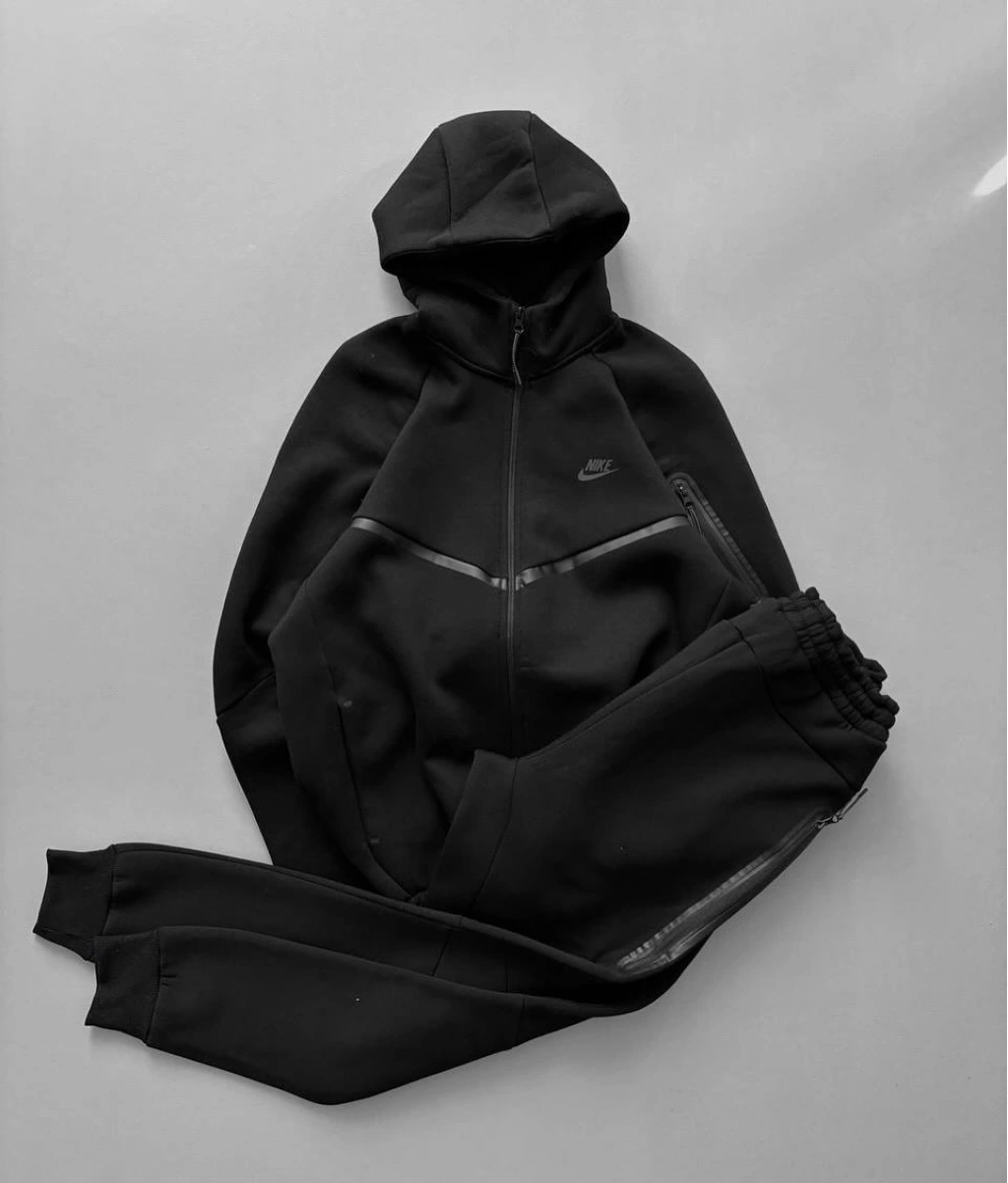 Tech Şardonlu Unisex Eşofman Takımı Siyah