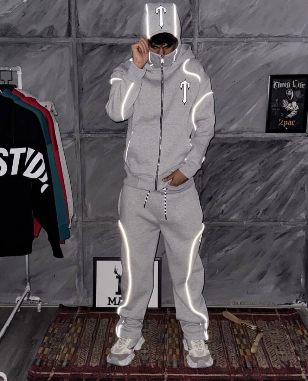 Reflektör Detay Traps Unisex Eşofman Takımı Gri