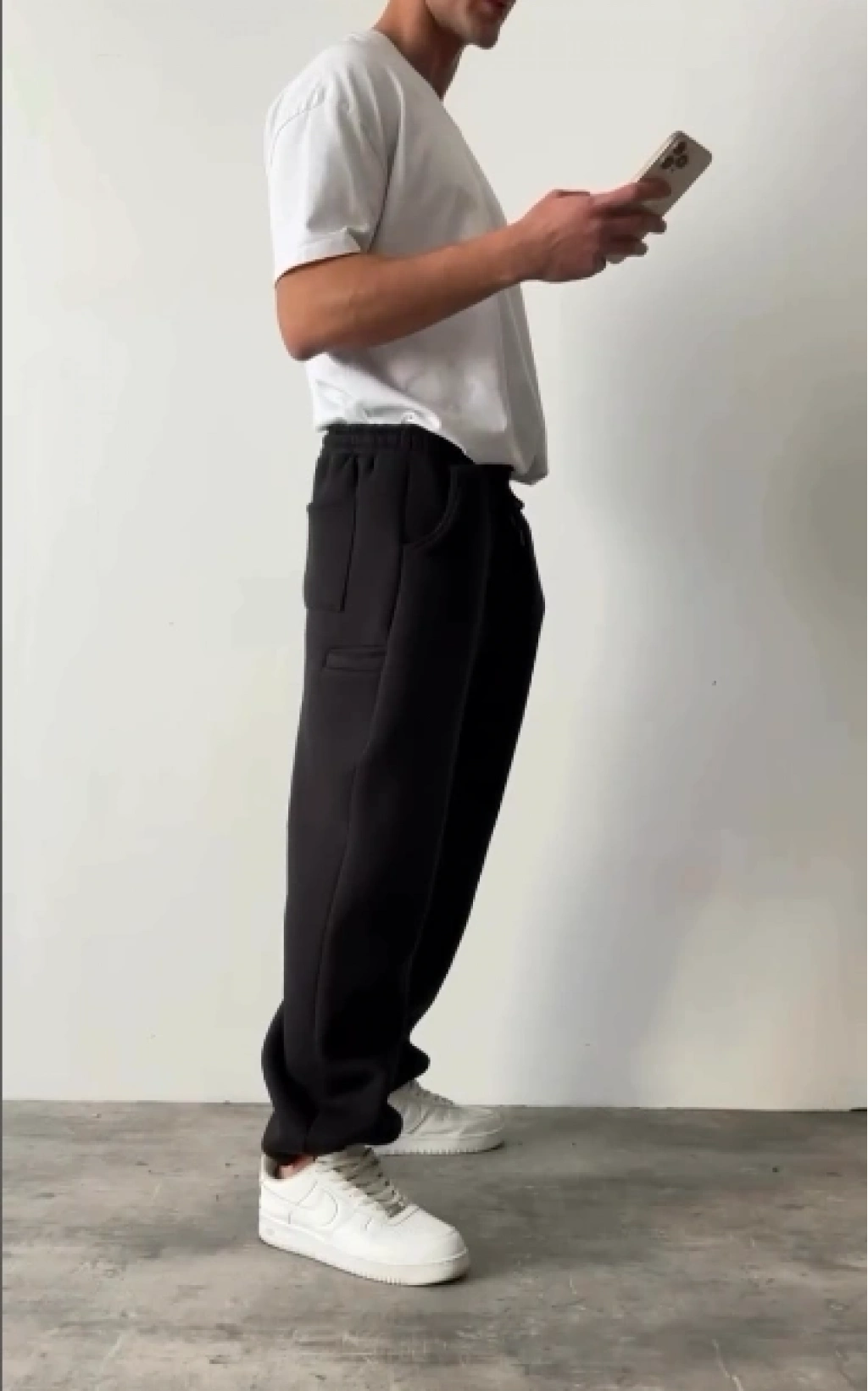 Yan Cep Detay Şardonlu Unisex Eşofman - Siyah